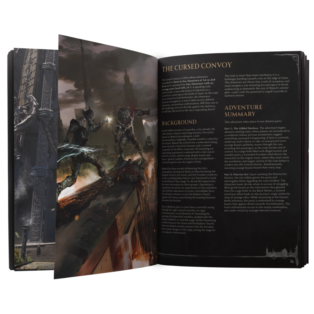 Entrance your players as they unravel the mystery of the ravaged First Hunters, the zealous Radiant Church, and the erudite Obitus Scholare in this victorian-flavored, grimdark setting. Luyarnha is a city on the brink. With a ready-made cast of characters and an unending list of trials, your players will find ample opportunity to become the heroes these soiled streets need or die trying.
