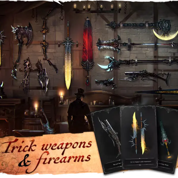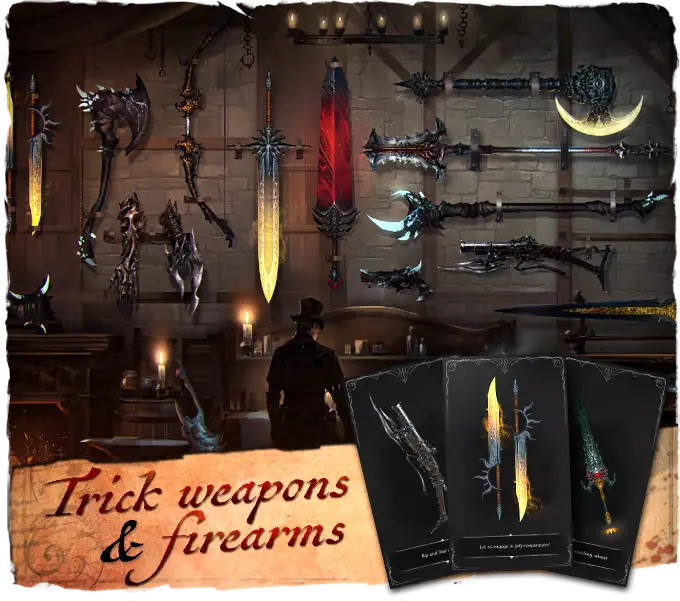 Trick Weapons are a shape-changing arsenal of armaments that enhance your hunters’ versatility. Fire yourmeat hookshot, latch onto the enemy, pull yourself to point blank range, then blow off their face as you switch your weapon to a blunderbuss, one of several revamped firearms.